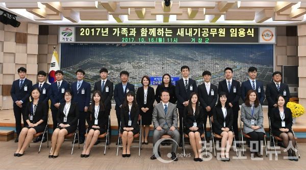 (거창/최병일) = 거창군(군수 양동인)은 2017년 가족과 함께하는 새내기 공무원 임용식을 16일 11시 군청 대회의실에서 신규공무원과 가족 50여 명이 참석한 가운데 임용식을 가졌다.