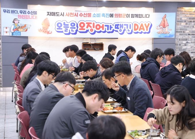 [경남도민뉴스=이상민 기자] 의령군은 지난 28일 군청 구내식당에서 자매도시 사천시의 수산물 오징어를 활용한 중식 메뉴를 제공하는 ‘오늘은 오징어가 땡긴 데이(day)’ 행사를 진행했다고 밝혔다.