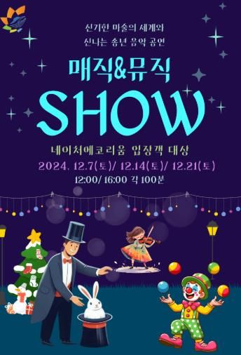 ‘송년 매직·뮤직쇼’는 네이처에코리움 유료 입장객이라면 별도의 사전 예약 없이 누구나 참여할 수 있다.