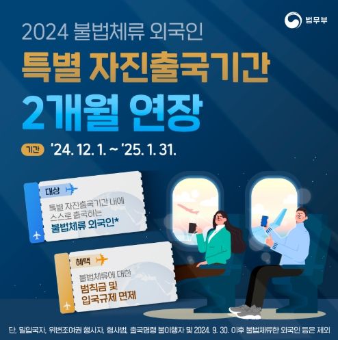 * 단, 밀입국자, 위변조여권 행사자, 형사범, 출국명령 불이행자 및 2024. 9. 30. 이후 불법체류한 외국인 등은 제외