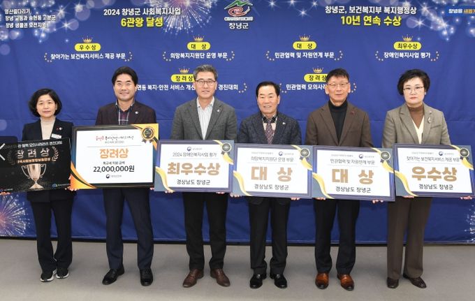올해 창녕군은 △민관협력 및 자원연계 부문 ‘대상’ △희망복지지원단 운영 부문 ‘대상’ △장애인복지사업 평가 ‘최우수상’ △찾아가는 보건복지서비스 제공 부문 ‘우수상’ △민관협력 모의사례 경진대회 ‘장려상’ △행정안전부 2024년 읍면동 복지안전 개선 우수사례 경진대회 ‘장려상’을 수상하며 6관왕의 영예를 안았다.