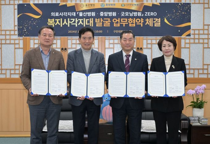 [경남도민뉴스=최재경 기자] 울산 남구는 5일 울산병원·중앙병원·굿모닝병원과 의료사각지대 ZERO를 위한 복지사각지대 발굴 업무협약을 체결했다.