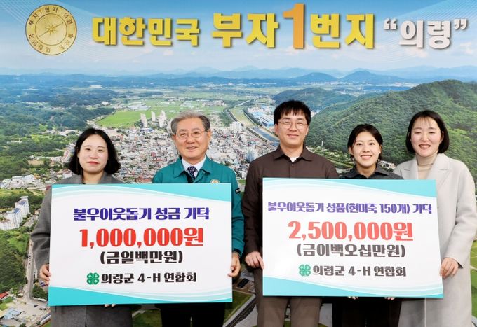 [경남도민뉴스=이상민 기자] 의령군4-H연합회(대표 백상현)가 지난 3일 의령군청을 방문하여 불우이웃돕기 성금 100만원과 250만원 상당의 현미죽 150개를 기탁했다.