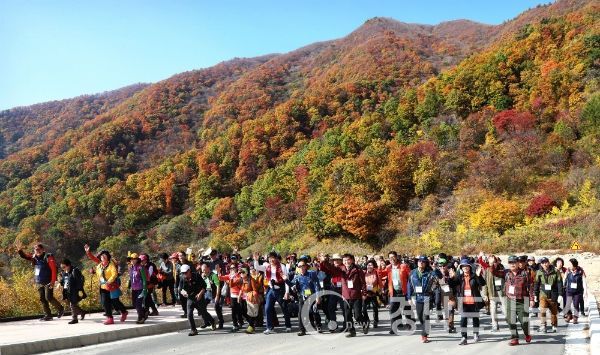 산삼휴양밸리 원산지구인 산림생태문화체험단지에서 광평지구 대봉원에 이르는 임도 7.2km를 걷는 이날 행사에는 고령의 향우들도 가뿐하게 걸으며 고향 함양의 가을 정취를 만끽할 수 있었다.