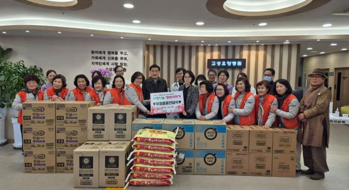 행사의 첫 순서는 고성문화원 봉사단 회원들이 준비한 물품 전달로 시작되었다.