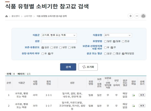 식약처는 영업자가 식품의 특성(식품유형, 포장방법, 보존‧유통온도 등)에 맞는 소비기한 참고값을 쉽게 확인할 수 있도록 지난 1월 19일부터 ‘소비기한 참고값 검색 서비스’를 제공하고 있다.