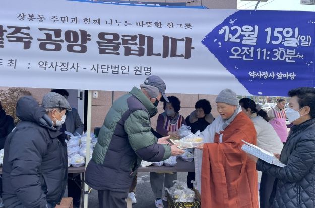 이날 행사에 참여한 어르신들은 “소외된 이웃을 위해 도시락에 이어 맛있는 동지팥죽을 나누어준 약사정사에 감사하다”며 고마운 마음을 전했다.