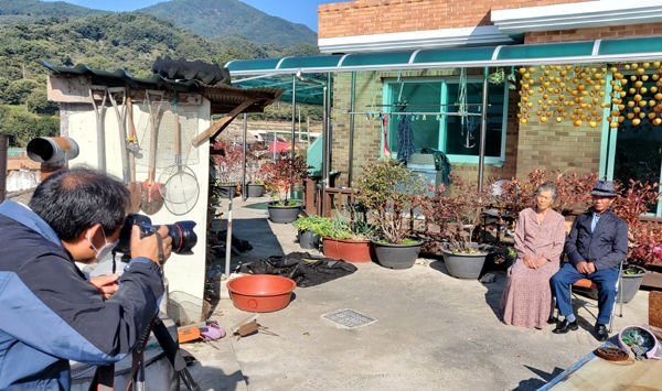 이날 대상자는 서백마을 황모(83)씨 부부로 본인의 자택 마당에 위치한 의자에 나란히 앉아 사진 촬영을 진행했다.