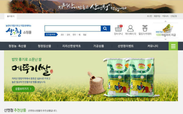 농특산물쇼핑몰 부문 대상을 수상한 산청군의 ‘산엔청쇼핑몰’은 지난해 12월 문을 열었다. 산청군에서 직접 운영해 입점 단계부터 엄격한 심사를 거쳐 우수한 제품만을 제공한다.