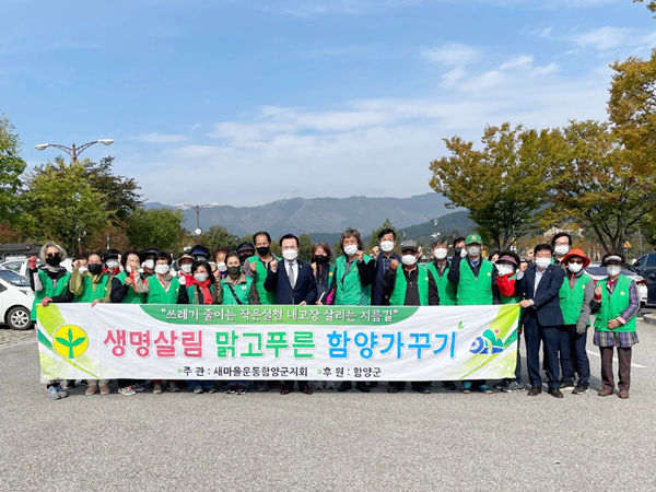 [경남도민뉴스] 새마을운동함양군지회(회장 조명환)는 21일 오전 상림공원에서 병곡 솔숲구간 사이 위천변에서‘맑고푸른 함양가꾸기’환경정화 활동을 펼쳤다.