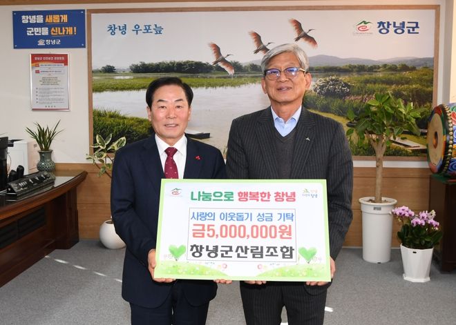 [경남도민뉴스=김병현 기자] 창녕군은 지난 17일 창녕군산림조합에서 연말연시를 맞아 지역 내 어려운 이웃을 위해 써달라며 성금 500만 원을 기탁했다고 밝혔다.