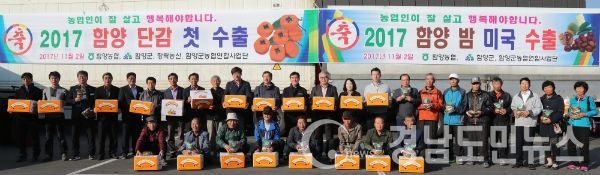 임창호 군수는 “그 동안 꾸준하게 해외 농식품 수출을 위해 헌신적인 노력을 아끼지 않으신 농협 등 관계자 여러분께 감사의 인사를 전한다”라며 “이번 미국과 태국에 밤과 단감의 첫 수출은 함양 농식품이 세계 어디에 나가더라도 경쟁력이 있는 것을 보여주는 것으로 앞으로 신규시장을 계속 발굴해 ‘함양군 농식품 수출 1억불’, ‘함양군 군민소득 3만불 달성’을 반드시 달성하길 기대한다”고 말했다.
