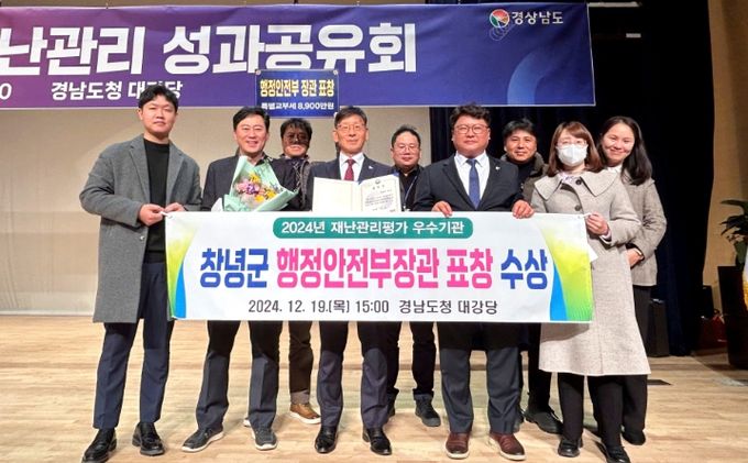 [경남도민뉴스=김병현 기자] 창녕군은 지난 19일, 경상남도 재난관리 성과공유회에서 2024년 재난관리평가 행정안전부 장관 표창을 수상했다고 밝혔다.