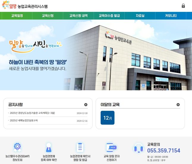 [경남도민뉴스=나희준 기자] 밀양시는 농업인들에게 지속적이고 편리한 교육 서비스를 제공하기 위해‘농업교육관리시스템’을 구축했다고 23일 밝혔다.