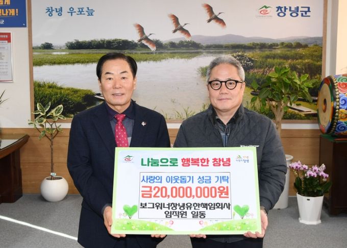 성낙인 군수는 “매년 창녕군을 위해 나눔을 실천하는 보그워너 김동희 대표이사님과 임직원들께 감사드린다”라며, “기업하기 좋은 환경을 조성해 지역사랑을 실천하는 기업과 함께 성장할 수 있는 방안을 모색하겠다”라고 화답했다.