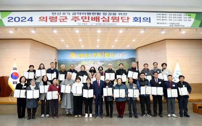 의령군은 20일 군청 4층 회의실에서 공약 평가를 위한 주민배심원 30명을 위촉, ‘2024 제1차 주민배심원단 회의’를 개최했다.