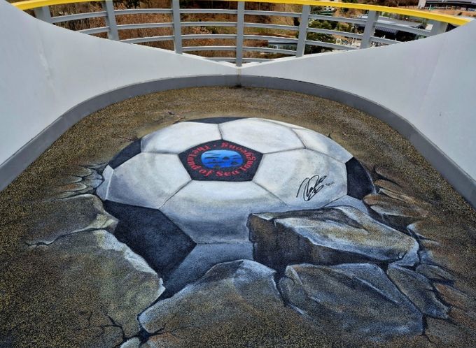 또 ‘김민재 선수 사인볼 트릭아트’는 축구 스타 김민재 선수의 사인이 새겨진 축구공이 바닥에 박힌 듯한 입체감을 표현해 마치 실제 공간 속에서 축구공과 함께하는 생생한 느낌을 선사한다.