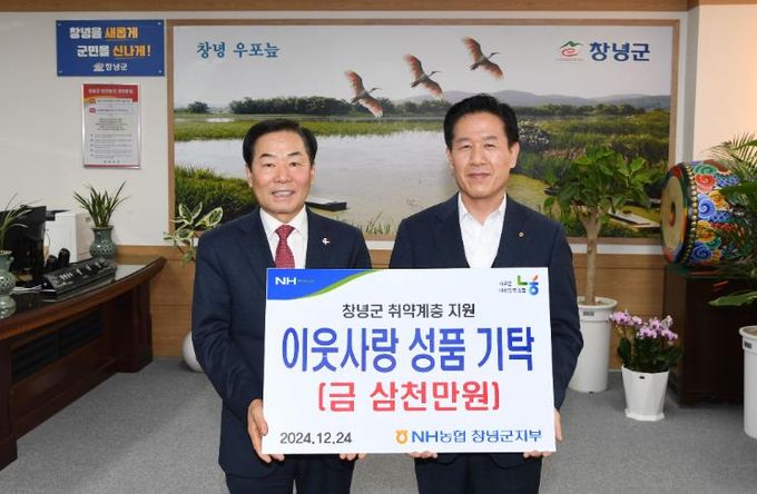성낙인 군수는 “지역민을 위해 나눔을 실천하는 NH농협 창녕군지부의 따뜻한 마음에 감사드리며, 기탁된 소중한 물품은 꼭 필요한 군민들에게 잘 전달하겠다”라며, “창녕군도 겨울철 취약계층 발굴과 지원에 더욱 힘쓰겠다”라고 말했다.