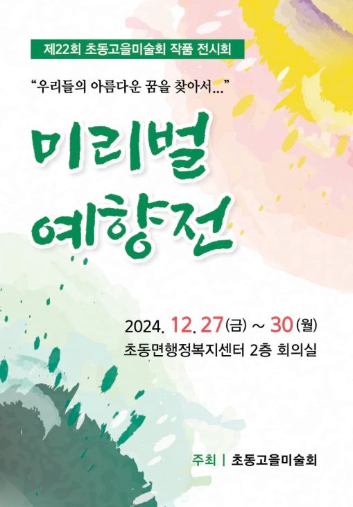 서연주 초동면장은 “지역민들에게 미술 작품을 직접 접할 기회를 제공해주신 작가분들께 감사의 말씀을 전한다”며 “많은 주민들이 전시회를 관람하여 문화와 예술을 즐기고, 밀양 발전에 대한 관심과 참여를 이어가길 바란다”고 말했다.