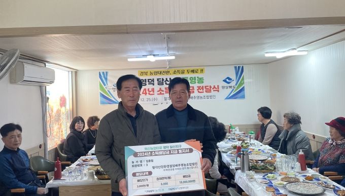 [경남도민뉴스=이돈휘 기자] 25일 영덕 달산마을 공동영농 참여 농가에 크리스마스 선물처럼 첫 배당금이 지급됐다. 문경 영순지구에 이어 두 번째 소득배당이다.