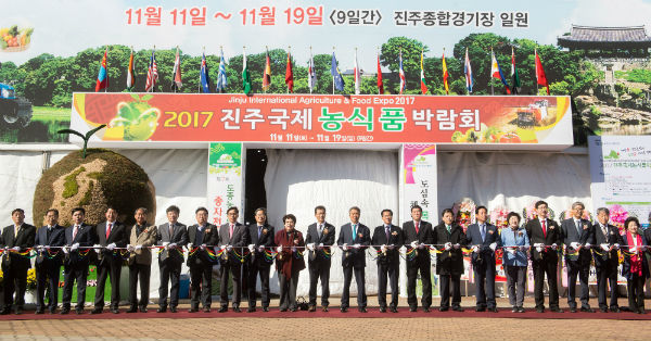 (진주/최광용 기자) = 진주시는 지난 11일부터 오는 19일까지 9일간 진주종합경기장 일원에서‘자연愛 건강을 담다. 농업愛 미래를 열다!’라는 슬로건으로 20개국 250개사 500부스 규모로 전국의 우수 농기계, 농식품을 전시하는 『2017 진주국제농식품박람회개막식』을 성황리에 가졌다.