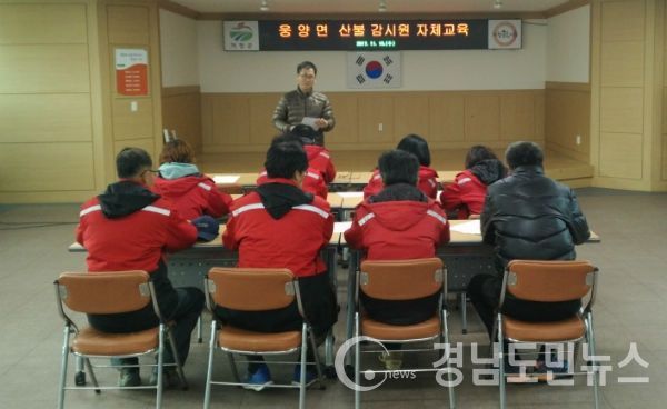 (거창/최병일) = 거창군 웅양면(면장 이덕기)은 15일 면사무소 2층 회의실에서 산불감시원 10명이 참석한 가운데 2017년 가을철 산불예방활동을 위한 산불감시원 자체교육을 진행했다.