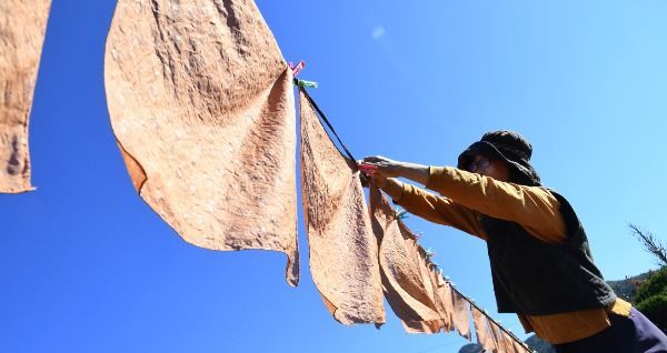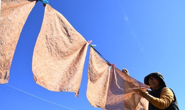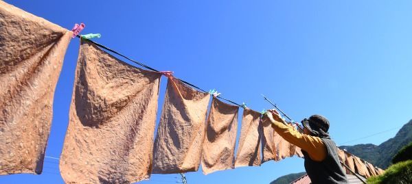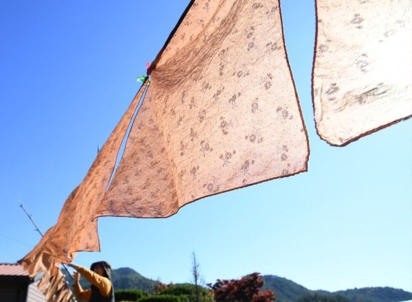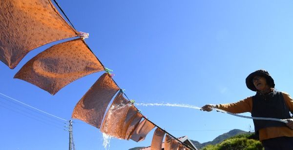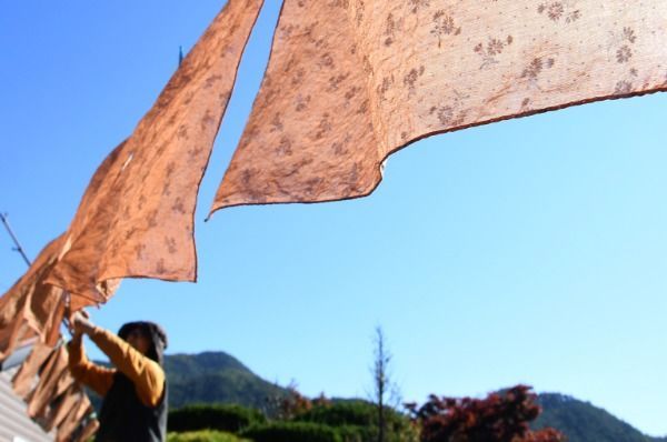 [경남도민뉴스] 미세먼지없이 쾌청한 가을 날씨를 보인 28일 경남 거창군 북상면 농산리의 한 주민이 감물 염색을 한 천을 가을바람 부는 파란하늘 아래서 말리고 있다.