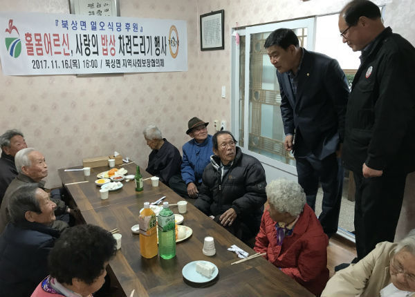 한 편 후원을 해준 일오식당(대표 신은범)은 2016년부터 북상면 지역사회보장협의체와 정기후원 협약을 맺고 년4회(분기별1회) 관내 생활이 어려운 홀몸어르신에게 사랑과 온정이 담긴 사랑의 밥상을 제공하고 있다.