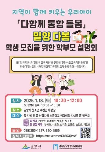 안병구 밀양시장은“이번 설명회를 통해 학부모들의 궁금증을 해소하고, 밀양이 교육 돌봄 도시로 거듭나는 계기가 되길 바란다”라고 밝혔다.