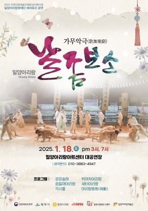 문화체육관광부의‘2024년 지역 대표예술단체 육성 지원사업’으로 설립된 밀양아리랑예술단은 지난해 12월 23일, 밀양의 세시풍속을 주제로 한 창작 연희극‘영등할매아리랑’을 아리랑아트센터 대공연장에서 선보여 큰 호응을 얻었다. 이어 오는 18일에는 관내 초·중·고등학생들로 구성된 아리랑영재단의 밀양아리랑을 기반으로 한 가무악극‘날 좀 보소’가 관객들과 만난다.