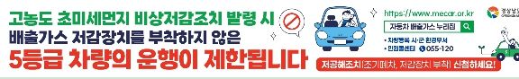 [경남도민뉴스=김종태 기자] 사천지역에서도 미세먼지 농도가 높으면 배출가스 5등급 차량 운행이 제한된다.