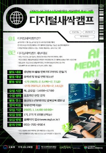 [경남도민뉴스=최미정 기자] 양산 물금청소년문화의집은 2025년 겨울방학을 맞아 중학생 및 동일 연령 청소년을 대상으로 디지털새싹캠프를 개최한다.