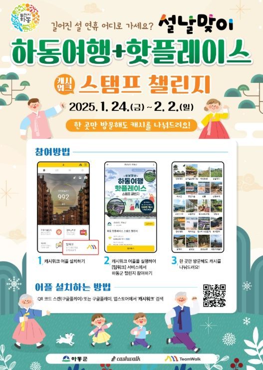 [경남도민뉴스=김태수 기자] 하동군이 임시공휴일 지정에 따라 길어진 설 연휴에, 관광객들의 발길을 사로잡기 위한 ‘모바일 스탬프 챌린지’ 이벤트를 진행한다.