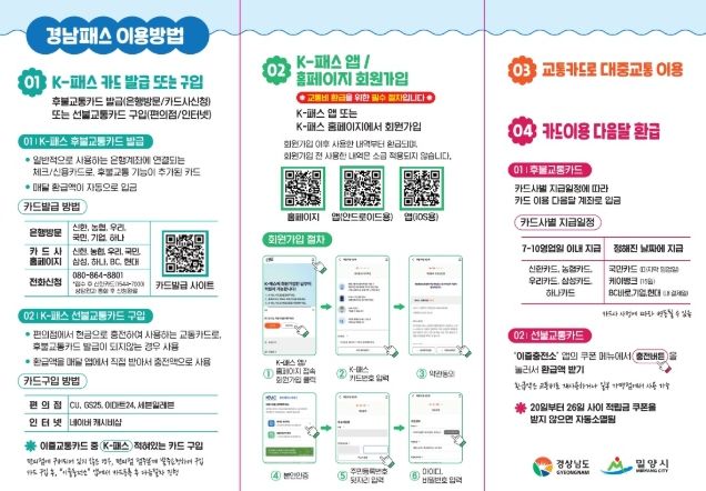 [경남도민뉴스=나희준 기자] 밀양시는 대중교통을 이용하는 시민의 교통비 부담 경감을 위해 2025년 경남형 대중교통비 환급지원사업(경남패스)을 본격 시행한다.