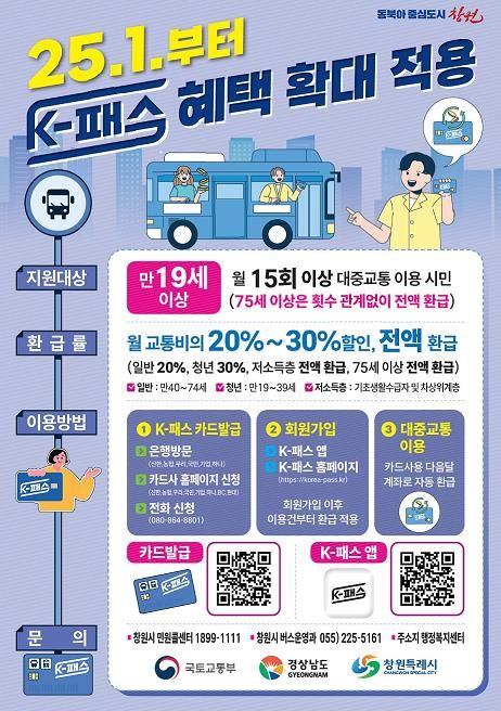 [경남도민뉴스=박민호 기자] 창원특례시는 올해부터 K-패스 제도를 기반으로 한 ‘경남 K-패스’를 시행, 창원시민이 대중교통을 보다 저렴하게 이용할 수 있도록 교통비 환급 혜택을 확대 제공한다.