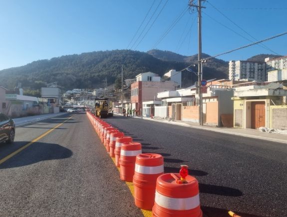 그리고, 지난해 2월 길이 243m 구간에 폭 20m로 확·포장 하는 사업을 착공, 1년만에 도로 구간의 실질적인 공사를 완료했다.