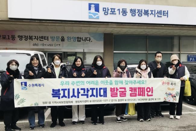 한편, 위기가구 발굴 캠페인에서 발굴된 대상자는 망포1동 행정복지센터 복지상담을 통해 공적 지원 및 필요한 복지자원을 연계하여 맞춤형 복지서비스를 제공할 예정이다.