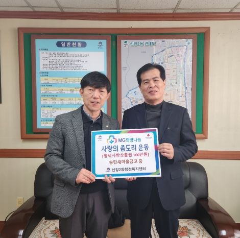 [경남도민뉴스=김미순 기자] 송탄MG새마을금고는 지난 17일 ‘MG희망나눔 사랑의 좀도리운동’의 하나로 평택시 신장2동 행정복지센터에 평택사랑상품권(100만 원)을 기부했다.