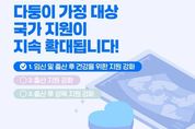 [경남도민뉴스=경남도민뉴스 기자] 다둥이 아이돌봄서비스 지원을 확대합니다. 2자녀(쌍둥이 포함) 이상 가구에 대한 돌봄서비스, 본인부담금 할인 적용 등 정부 지원을 확대했습니다. 부모 모두 육아휴직 중이라도 쌍둥이 이상 출산한 가정의 경우 양육공백으로 인정하고 아이돌보미를 지원합니다. (’24.1.~) 출산·양육 가정에 대한 경제적 지원을 강화합니다. 출산 양육의 경제적 부담을 경감하기 위해 첫만남이용권 지원 확대, 부모급여 인상 등 지원을 강화했습니다. (’24.1.~) 8세 미만의 모든 아동을 대상으로 월 10만 원의 아동수당을 지급 중입니다. 임신·출산·양육이 행복해지도록 체감도 높은 정책을 지속적으로 마련해 나가겠습니다.