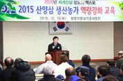 함양군은 15일 오전 농업기술센터 농업인교육관에서 군내 산양삼 재배농가 등 150여명이 참석한 가운데 향토산업 육성사업단(대표 오제대)주관 ‘함양산양삼 산업화 및 명품육성 교육’이 열렸다고 밝혔다. 산양삼 가공품 전시 및 무료시식을 시작으로 한 이날 교육은 임창호 군수의 ‘명품산양삼 생산을 위한 농가의 자세’ 특강, 경남발전연구원 김태영 박사의 ‘서복불로초와 연계한 중국 관광객유치방안’과 농어촌개발원 서동채 원장의 ‘함양산양삼 산업화방안’ 전문가 강연 순으로 진행됐다. 임창호 군수는 특강에서 “함양 지리산산양삼산업특구가 지난 1일부터 지정승인을 받음으로써 오는 2020년까지 747억원의 사업비를 투입할 수 있게 돼 산양삼생산 가공 유통 분야의 획기적 발전이 기대된다“며 ”특구가 추진되면 브랜드 인지도가 향상되고 함양 산양삼 산업화 기반과 2020 함양산삼항노화 엑스포개최가 탄력 받게 될 것“이라고 강조했다. 또한, “함양산양삼이 2016년 농림축산식품부 6차산업화 지구 조성사업에도 선정돼 국·도·
