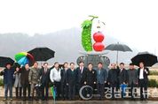 함양군은 10일 안의면 교북리 국도 3호선변(안의사과영농조합법인 앞)에서 임창호 군수와 황태진 군의회 의장, 진병영 도의원, 군의원, 기관 및 사회단체장 등 300여 명이 참석한 가운데 ‘안의 사과·여주 홍보조형물 준공식’을 개최했다. 이날 준공식은 추진배경 및 경과 보고, 인사말씀, 제막식 및 기념 식수 기념촬영 순으로 진행됐다. 5000여만원의 사업비가 투입된 이번 조형물은 폭 4.2m, 높이 4.5m로 ‘사과·여주의 고장 안의면’ 글씨가 새겨진 물레방아문양 화강석 위에 FRP(유리섬유강화 플라스틱)재질의 싱싱한 여주와 사과모양 조형물이 나란히 세워진 형태로 구성됐다. 특히 조명장치까지 달아서 어두운 밤에도 인근 도로를 오가는 많은 사람들이 조형물을 볼 수 있게 함으로써 홍보효과가 배가될 전망이다. 임창호 군수는 “이번 홍보조형물 설치로 항노화 건강 식품의 고장, 함양 사과·여주의 최대 재배 지역인 안의를 널리 알리는 홍보효과를 거둬 지역경제 활성화 및 군민소득 3만불 달성에 기여할 것으로 기대된다”고 말했다.