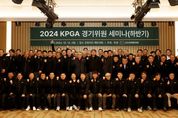 [경남도민뉴스=공동 기자] (사)한국프로골프협회(회장 김원섭, 이하 KPGA)가 12일 경기 수원에 위치한 코트야드 메리어트에서 2024년 하반기 ‘KPGA 경기위원 세미나’를 개최했다. 이번 경기위원 세미나에서는 ▲ 좋은 심판의 조건과 ▲ 페이스 오브 플레이에 관한 강의, ▲ 임원 간담회, ▲ 2025년 경기위원 주요 전달사항과 ▲ 올해의 경기위원상 시상 등이 진행됐다. 최우수 경기위원은 김대원(57) 경기위원 팀장이 선정됐으며 우수 경기위원에는 백승열(55), 주영호(54), 이성호(43), 최지선(64), 최윤복(67), 양현길(60) 경기위원이 선정됐다. 권청원 경기위원장은 “다양한 의견을 나누고 소통하는 뜻 깊은 시간이었다”며 “2025 시즌에도 KPGA 경기위원회는 공정한 판정과 원활한 경기 운영을 위해 최선을 다할 것”이라고 이야기했다. KPGA 김원섭 회장은 “올 한 해도 투어 현장 최전선에서 고생하신 경기위원회의 노고에 고마움을 표한다”며 “오늘 세미나가 2025 시즌을 위한 준비에 많은 도움이 되길 바라며 다음 해에도 선수들이 최고의 경기력을 발휘할 수 있도록 만전을 기울여달라”고