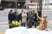 [경남도민뉴스=구인애 기자] 경상남도교육청은 3일 오전 도교육청 제2청사 앞에 세운 인권·평화 조형물 ‘기억과 소망’ 앞에서 여덟 번째 추모식을 열었다. 이 조형물은 지난 2017년 9월 내외부 전문가로 구성된 조형물 건립추진위원회에서 디자인 제작·설치 공모 등 다양한 의견을 수렴하여 ‘일본군 위안부 피해자의 인권 유린을 기억하고, 평화통일을 소망한다’라는 주제로 2018년 2월 28일 건립됐다. 추모식은 ‘기억과 소망’ 8주년과 3·1운동 제107주년을 기념하기 위해 마련했다. 참석자들은 헌화와 묵념을 통해 일본군 위안부 피해자들의 아픔을 기리고 넋을 위로했다. 박종훈 교육감은 “이번 추모식이 우리 가슴속에 무거운 책임감을 일깨우는 계기가 되길 바란다”라며 “경남 교육 공동체가 올바른 역사 인식을 바탕으로 인권과 평화의 가치를 실현하는 데 앞장서겠다”라고 말했다.