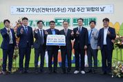 [경남도민뉴스=구인애 기자] 경상국립대학교 가좌캠퍼스 민주광장에서 출발하여 진치령터널을 지나 칠암동 철도문화공원을 왕복하는 7.7km는 가을 향기와 학생·교직원·동문·지역주민들의 발소리와 말소리로 가득했다. 출발할 때에는 경상국립대학교 글로컬대학 30 사업의 성과를 공유하고 돌아왔을 때에는 글로컬대학 사업을 주제로 퀴즈 이벤트를 하면서 모두 하나 되는 시간을 가졌다. 경상국립대학교는 개교 77주년 기념행사의 하나로 마련한 ‘7.7km 도전 트레킹’ 행사를 학생·교직원·동문·지역주민 830여 명이 참가한 가운데 성대하게 개최했다고 밝혔다. 이날 행사로 10월 20일부터 1주일간 진행된 경상국립대학교 개교 77주년 기념행사에 마침표를 찍었다. 대학 구성원은 물론 지역 주민과 함께 화합하고 소통하며 개교 77년과 건학 115년의 역사적 의미를 되새기는 시간이 됐다. 새로운 교육 모델을 실현하고 지역과 함께 성장하며 세상을 향해 나아가는 진정한 글로컬대학으로 발전해 가겠다는 다짐도 나누었다. 특히 이날 행사에서는 경상국립대학교 동문 10명이 각 770만 원씩, 모두 7700만 원의