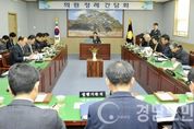 (합천/권연홍 기자) = 합천군의회(의장 석만진)는 8일 의원 간담회실에서 정판용 부군수 및 실국과장이 참석한 가운데 1월 첫 번째 의원 정례간담회를 개최했다. 신년 들어 처음 개최되는 이번 간담회에서는 정판용 부군수의 인사말과 함께 조수일 기획예산실장의 「1월 중 군정 주요업무계획」을 청취하고 설맞이 사회복지시설 방문 등 1월 중 의회운영사항을 협의했다. 석만진 의장은 인사말에서 “군민 모두 행복하고 건강한 한해가 되기를 바라며, 개편된 행정조직으로 맞이하는 2019년 새해에 첫 단추를 잘 꿰어 군민 행복과 군정 발전에 최선을 다하고 군민 입장에서 고민하고 지혜를 모아 모든 일을 순조롭게 풀어 나갈 수 있도록 힘을 모아주실 것”을 당부했다.