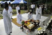 (합천/권연홍 기자) = 한국원폭피해자협회가 주최하고 합천군, 합천원폭지부(지부장 심진태), 한국원폭2세환우회(회장 강대현)의 주관으로 6일 합천원폭복지회관 내 위령각에서 문준희 합천군수, 강석진 국회의원, 석만진 군의장, 류명현 경상남도 복지보건국장, 김윤철 도의원 등 관내 기관 사회 단체장과 심진태 합천원폭지부장, (사)위드아시아 이사장 지원스님, 최승구 한인반핵평화연대 사무국장, 원폭피해자 협회 관계자 등 300여 명이 참석한 가운데 제73주기 원폭피해 영령을 위한 추모제가 거행됐다. 추모제는 1945년 8월 6일과 9일 일본 히로시마와 나가사키에 투하된 원자폭탄에 희생당한 한국인 피폭자들의 넋을 기리고, 고통스러운 삶을 영위하고 있는 피폭자 1세와 2세를 비롯한 후손들의 애절한 삶과 아픔을 공유하기 위한 자리로 마련됐다. 이 날 행사는 제례를 시작으로 추모공연(살풀이), 개회선언, 추모묵념, 추도사, 유족대표 인사말, 헌화, 추모합창 순으로 진행됐고, 이례적으로 일본 NHK방송국에서 추모제 현장을 일본에 생방송으로 보냈다 ▲ 제73주기 원폭피해 영령을 위한 추모제가 거행됐다.(사진/합천군) 문준희 합천군수는