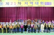 (합천/권연홍 기자) = 국제라이온스협회 355-E지구 합천, 산청, 거창, 함양지역 2017~2018 「제21차 지역대회」(대회장 안중환)가 지난 24일 10시 합천체육관에서 열렸다. 합천라이온스클럽(회장 윤용식) 주관으로 열린 이날 행사에는 류원찬 지구 총재와 지구 임원, 안중환 지역부총재를 비롯한 산청, 함양, 거창, 합천지역의 13개 클럽 회원 등 300여명이 참석했으며, 하창환 합천군수, 강석진 국회의원 등이 자리를 함께 해 대회를 빛냈다. 이날 1부 행사는 개회선언 및 타종, 국민의례, 라이온스 윤리강령 낭독, 신입회원 선서, 대회사, 환영사, 축사 등으로 진행됐으며, 2부 행사는 체육경기 및 한마당 잔치가 이어져 회원들 간 화합을 다졌다. 안중환 지역 부총재는 대회사에서 “무언가 받을 때 얻는 기쁨보다 나누어줄 때 얻는 기쁨이 더 크다”면서 “우리의 삶이 보다 더 윤택하고 살만한 삶을 만들기 위해서라도 봉사를 많이 하도록 하자”고 말했다. 이날 행사를 축하하기 위해 참석한 하창환 합천군수는 “오늘 합천, 산청, 함양 거창지역 라이온스의 화합을 위한 지역대회가 더 큰 봉사의 밑거름이 되어 알찬