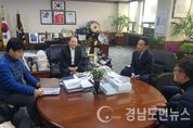 (합천/권연홍 기자) = 합천군 덕곡면(제갈종용)은 8일 창녕군청(군수 김충식)을 방문해 창녕군수 및 관계자들에게 창녕군 이방면 장천리 농경지 진출입도로 확포장 공사에 대한 설명회를 가졌다. 이번에 건의된 도로는 합천군 덕곡면과 청덕면, 창녕군 이방면을 이어주는 연결도로로 현재 농로를 겸해 사용되고 있는데, 1일 차량 이용대수가 400대에 이를 정도로 많은 교통량을 보이고 있지만, 도로 폭이 협소하고 시멘트로 포장돼 있어 차량운전자들뿐만 아니라 도로 주변 농민들도 매우 큰 불편을 호소하고 있는 상황이다. 이에 덕곡면장(제갈종용)은 합천·창녕보 방문객들과 자전거 동호인들이 갈수록 늘어나고 있는 이 시점에 관계도로 확포장을 통한 원활한 교통망 구축으로 향후 합천군과 창녕군의 상생발전을 도모하기 위해 방문객들이 많이 이용하고 있는 이방면 장천리 도로 확포장공사 추진을 창녕군에 건의했다. 설명을 들은 창녕군수(김충식)는 “건의된 도로의 문제점에 대해서 잘 알고 있으며, 해당 도로의 원활한 교통흐름 및 합천군과 창녕군의 우호증진과 상생발전을 위해 해당도로의 확포장공사를 추진할 것”을 약속했다.