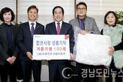 (합천/권연홍 기자) = 가수 수와진으로 알려진 (사)수와진의 사랑더하기 안상수 이사장은 지난 26일 합천군청(군수 하창환)을 방문하여 양모이불 100채를 기탁했다. 안상수 이사장은 “추운 겨울을 힘겹게 나고 있을 어려운 이웃을 위해 작은 선물을 마련했다”며 “모두가 행복해질 수 있는 세상을 만들고자 더 노력하겠다”고 소감을 전했다. 하창환 합천군수는 “수와진의 노래 파초에 ‘모르는 사람들을 아끼고 사랑하며 행여나 돌아서서 우린 미워하진 말아야해...’라는 노래가사가 생각난다”며 “멀리 합천군에까지 사랑을 전하는 수와진에게 감사드린다”고 말했다. 한편, 쌍둥이 형제인 가수 수와진은 1987년 데뷔해 ‘영원히 내게’, ‘파초’ 등의 노래로 널리 알려졌으며, 1985년부터 심장병 어린이 돕기 자선공원을 펼치는 등 30여년이 넘는 시간동안 행복한 세상을 만드는 일에 앞장서고 있다. 또한, (사)수와진의 사랑더하기는 2013년 설립되어 현재 전국에 13개 지회를 가지고 있고 합천군과는 2106년과 2017년 &lsq