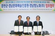 (합천/권연홍 기자) = 합천군(하창환 군수)과 경남문화예술진흥원(원장 이성주) · 경남항노화 주식회사(대표이사 백상원)간에 항노화 웰니스 관광산업 육성 발전 및 지역경제 활성화 도모를 위한 상호 협력 협약식을 27일 경남문화예술진흥원에서 체결했다. 이번 협약은 합천군의 풍부한 관광자원을 바탕으로 덕곡면에 위치한 경남문화예술진흥원의 숙박 및 교육시설의 인프라를 활용하여 경남항노화(주)의 웰니스 관광 프로그램 접목을 위한 협력 체계를 구축한 것이다. 협약에 따라 합천군과 경남문화예술진흥원·경남항노화(주)는 ▲지역내에 구축되어 있는 기존 인프라를 최대한 활용할 수 있는 프로그램 공동개발 ▲지역내 관광자원 활용 및 항노화 웰니스 관광 육성발전 공동 노력 ▲지역 관광자원 및 항노화 웰니스 프로그램 국내·외 홍보와 관광객 유치 적극 노력 등에 상호 긴밀히 협력하기로 했다. 하창환 합천군수는 “경남 서북부권 항노화 웰니스 관광산업에 우리군의 자랑인 천혜의 관광자원을 바탕으로 체류형 관광객이 늘어나길 기대한다”고 말했으며, 이성주 경남문화예술진흥원장은 “새롭게 들어선 합천 청사에서 문화예술과 결합된